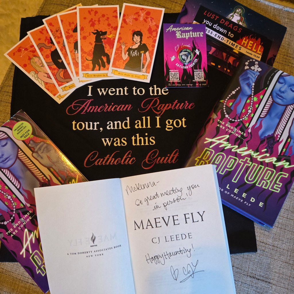 From CJ’s author bio: CJ LEEDE is a horror writer, hiker, and Trekkie. She is the author of Maeve Fly and American Rapture. Her debut novel Maeve Fly won the Golden Poppy Octavia E. Butler Award and Splatterpunk Award, and earned a Bram Stoker Award nomination. When she is not driving around the country, CJ can be found in LA with her boyfriend and rescue dogs.