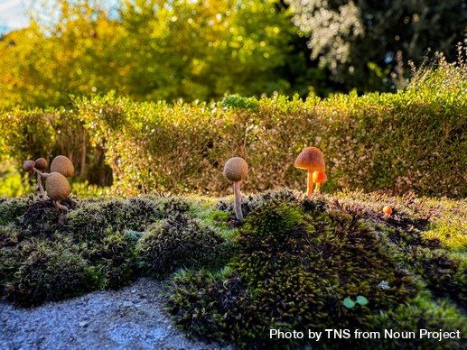 Mushrooms growing out of moss by TNS from Noun Project (CC BY-NC-ND 2.0)